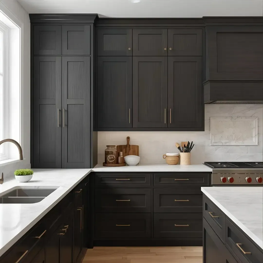 Espresso and charcoal tones for luxurious, modern kitchens.